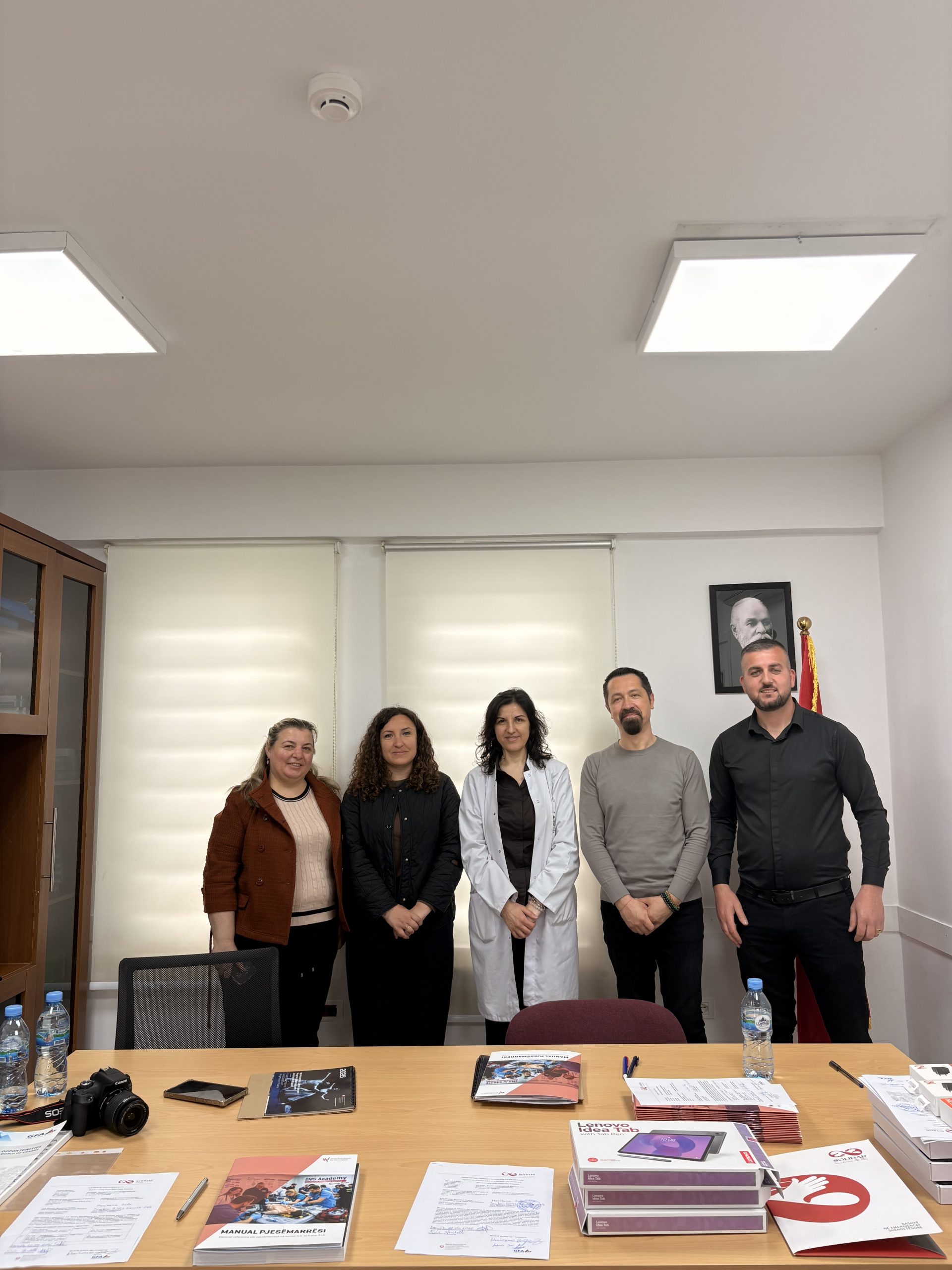 Në kuadër të zbatimit të Projektit SOLIDAR, i cili synon forcimin e Shërbimeve të Urgjencës Mjekësore në nivelin e Kujdesit Shëndetësor Parësor, u zhvillua më 22 prill 2026 një aktivitet në terren me fokus nisjen e fazës pilot për shpërndarjen e pajisjeve digjitale dhe materialeve mbështetëse në institucionet shëndetësore përfituese. Ky aktivitet u organizua në bashkëpunim ndërmjet OSHKSH dhe projektit SOLIDAR, ku OSHKSH u përfaqësua nga Drejtoresha e Përgjithshme Jeta Deda, ndërsa projekti SOLIDAR u përfaqësua nga Ervin Toci dhe Evis Sferdelli.