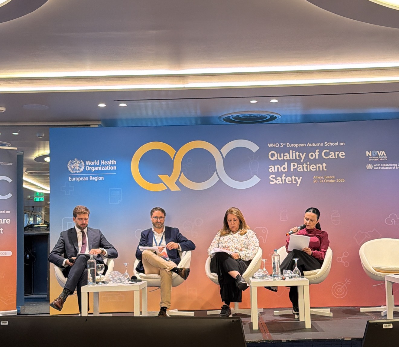 Operatori i Shërbimeve të Kujdesit Shëndetësor (OSHKSH) mori pjesë në trajnimin rajonal të Organizatës Botërore të Shëndetësisë (OBSH), me temë “Cilësia e kujdesit dhe siguria e pacientit”, organizuar nga WHO Quality of Care and Patient Safety Office, WHO Regional Office for Europe dhe National and Kapodistrian University of Athens. Trajnimi i zhvilluar nga data 20 deri më 24 tetor 2025 në Athinë, Greqi, mblodhi profesionistë të shëndetit publik dhe ekspertë nga mbi 30 vende të rajonit evropian me qëllim shkëmbimin e përvojave dhe praktikave mbi zhvillimin e politikave të cilësisë, ndërtimin e indikatorëve, sigurinë e pacientit dhe përfshirjen e qytetarëve në kujdesin shëndetësor. Gjatë pesë ditëve të trajnimit, u organizuan ligjërata, panele diskutimi, punë në grup dhe workshop-e praktike, të udhëhequra nga ekspertë ndërkombëtarë të fushës së shëndetit publik.
