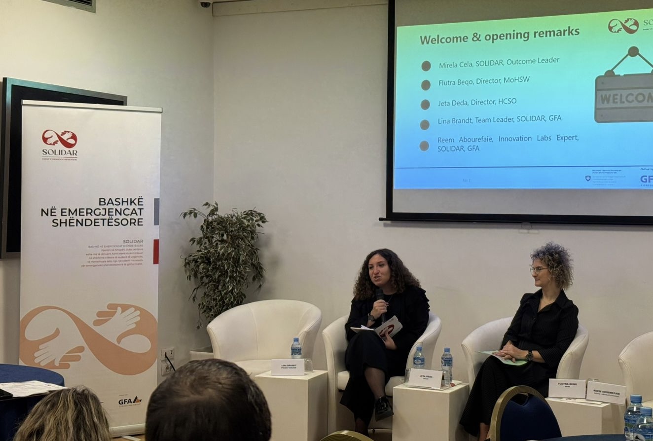 Përfaqësueset e Operatorit Qendror, znj. Marsida Merdani dhe znj. Elona Xhepi trajtuan në këtë punëtori reformat e ndërmarra nga Ministria e Shëndetësisë dhe Mbrojtjes Sociale në ofrimin e shërbimive socio-shëndetësore pranë institucioneve të kujdesit shëndetësor parësor. Më konkretisht u theksua shndërrimi i qendrave shëndetësore në qendra socio-shëndetësore, rolet psikologëve/ punonjësve socialë në ofrimin e shërbimeve shëndetësore, si pjesë e ekipeve multidisiplinare pranë qendrave shëndetësore në mbarë vendin.